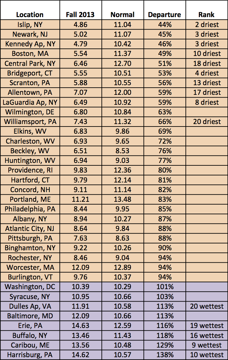 Precipitation was generally below normal during the fall season.