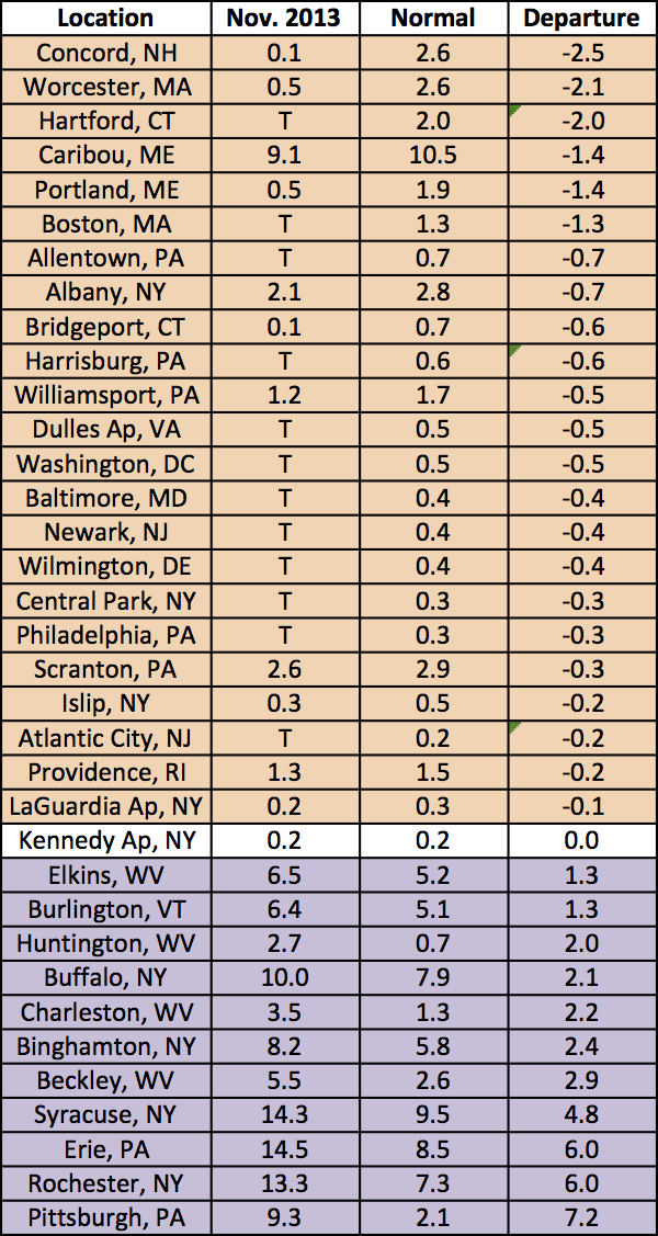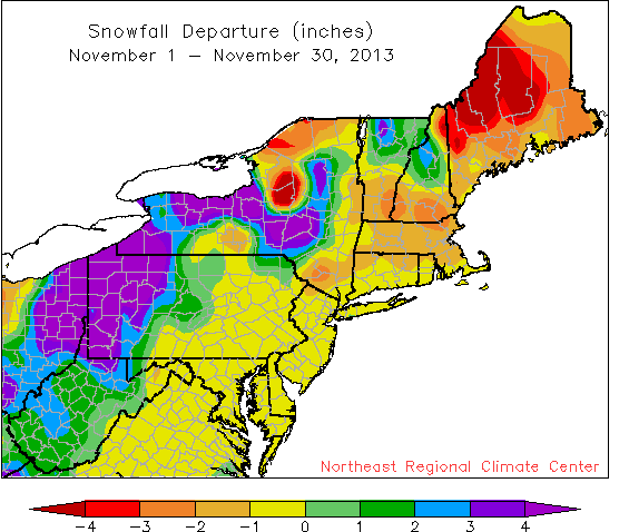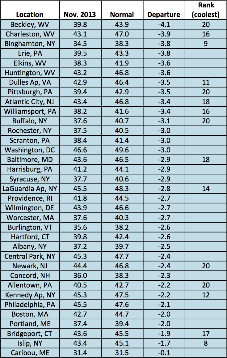November temperatures were more than 2°F below normal for a majority of the region.