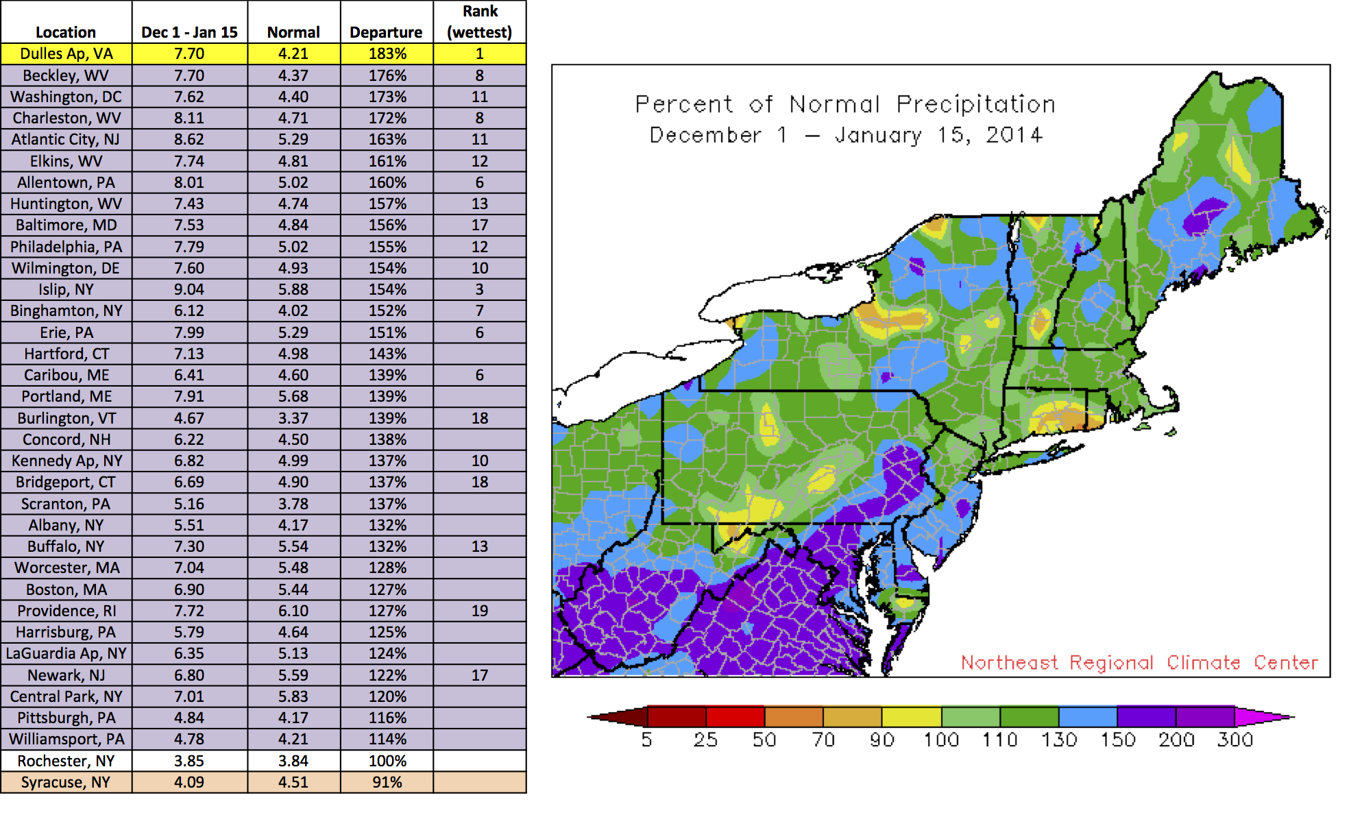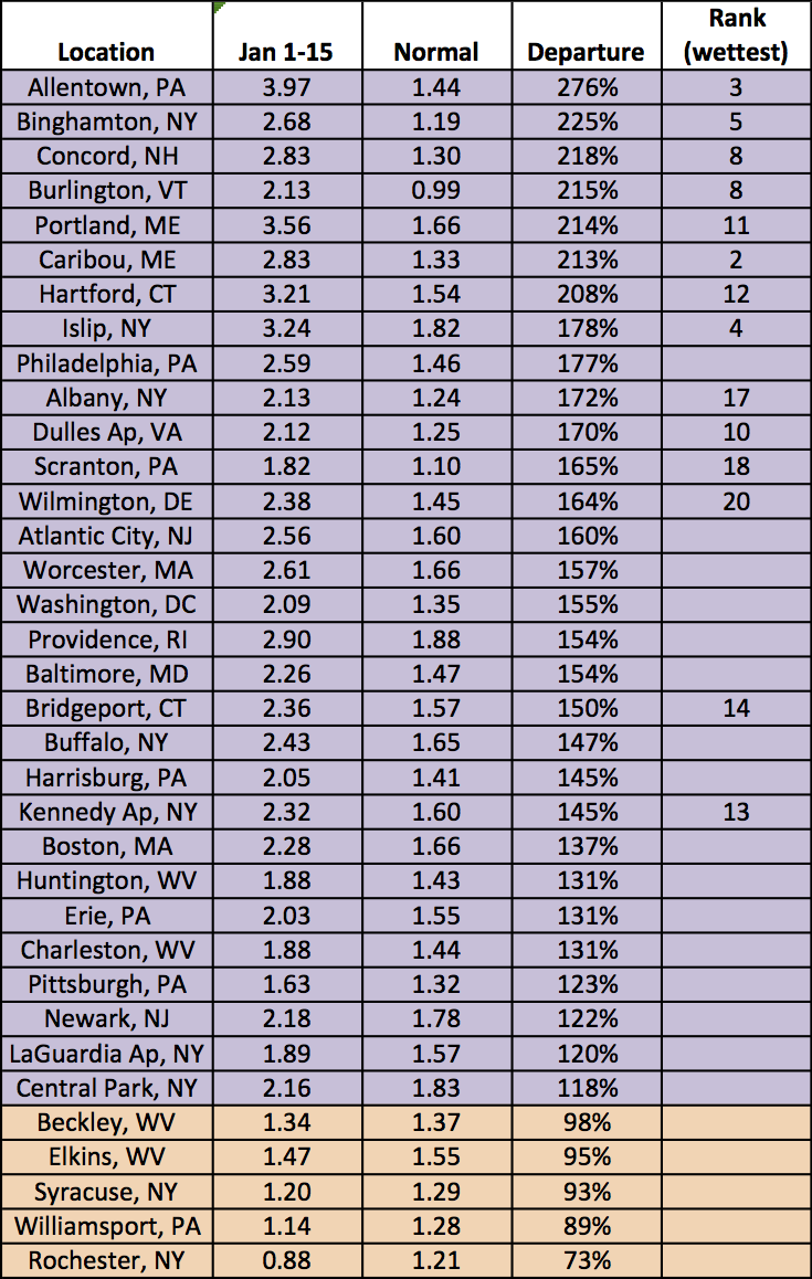 It has been a wet January, except in parts of central Pennsylvania and eastern West Virginia.
