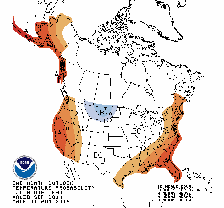 Meteorological fall kicked off with warm temperatures for most of the Northeast. All but two of the 35 airport climate sites were warmer than normal, with temperatures running up to 3.9 degrees F above normal. Will the warmth continue? The Climate Predication Center is forecasting an increased chance of above-normal September temperatures for most of the region.