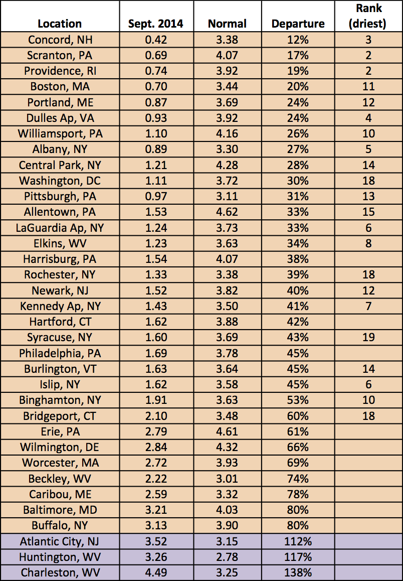 The region saw well-below-normal precipitation in September, with many areas seeing less than 50% of normal.
