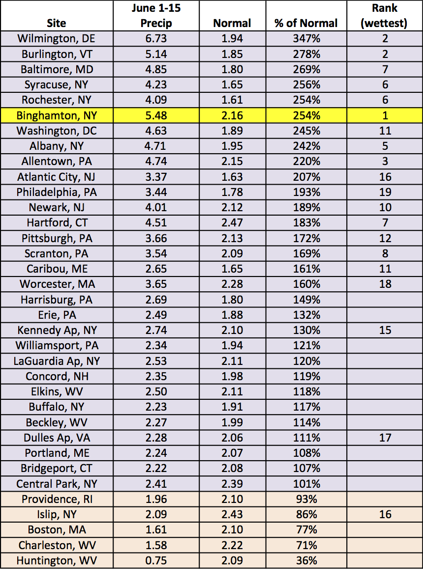 The first half of June was wet for almost the entire region, except for West Virginia, Long Island, and parts of coastal New England.