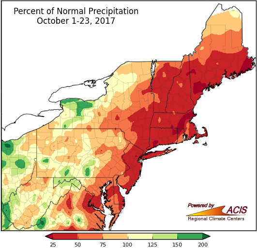 Most of the Northeast received 100% to more than 200% of normal precipitation in October.