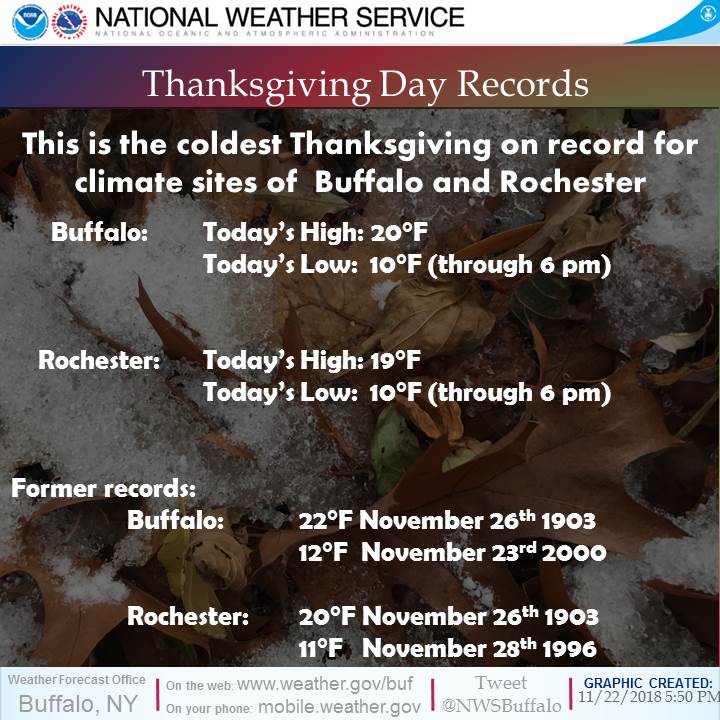 An unseasonably cold air mass settled over the Northeast for the Thanksgiving holiday, with temperatures more than 30°F below normal in the coldest areas. Preliminary, unofficial data indicate that these were some of the all-time coldest November temperatures on record for the entire state of New York.