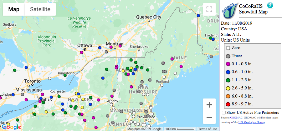The average date of the first measurable snow (0.1 inches) ranges from late October in Caribou to late December in Atlantic City. Yesterday (November 7), parts of the region saw their first measurable snow. For the major climate sites in central and western New York, the arrival was right on time, but for Caribou, it was a little later than usual.