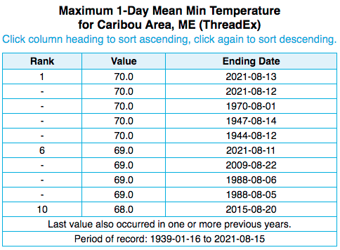 During the first half of August, average temperatured ranged from 2°F colder than normal to 4°F warmer than normal, with the coolest locations generally in more coastal areas and the warmest locations generally in more northern areas. Overall, much of the Northeast saw near- or above-normal temperatures during the first half of August. Temperatures at the major climate sites ranged from 1.1°F below normal in Allentown, PA, to 3.3°F above normal in Caribou, ME, with the majority of sites being on the warm side of normal. In fact, seven major sites ranked this August 1-15 period among their 20 warmest on record. In addition, Caribou, ME, tied its hottest minimum temperature on record for the month of August, 70°F, on August 12 and 13.