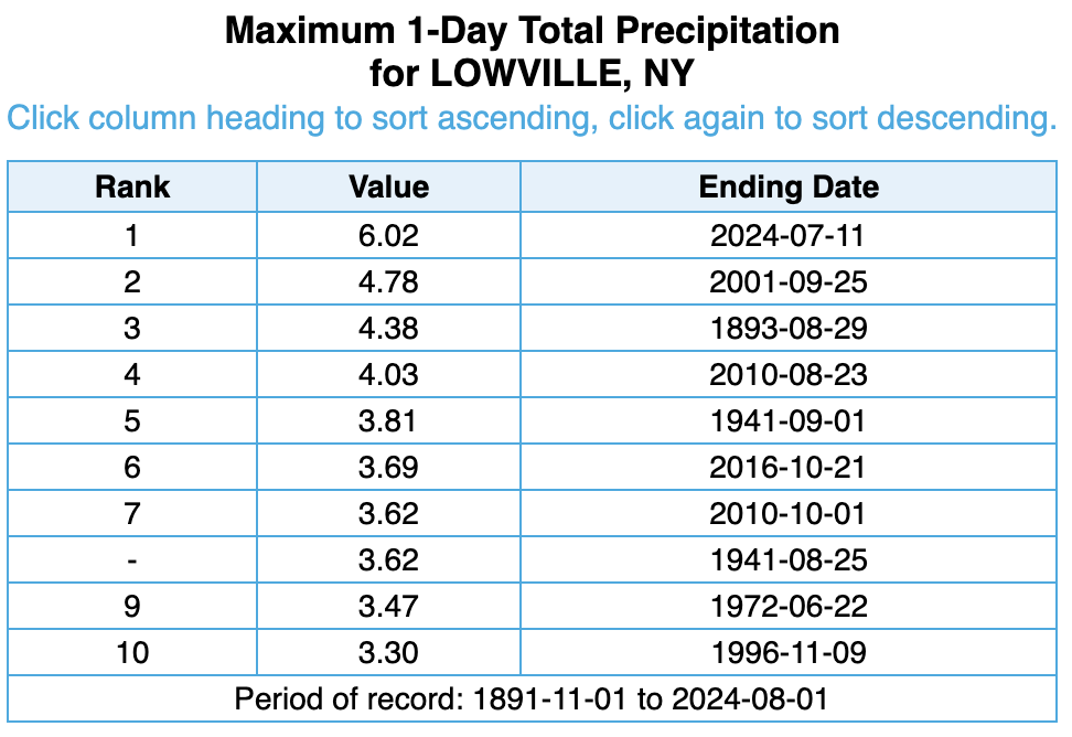 Preliminary data suggests St. Johnsbury’s 8.41 inches of rain is the state’s greatest daily precipitation total for July.